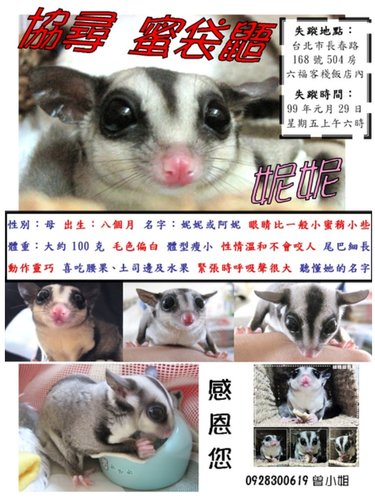 協尋公告【蜜袋鼯-妮妮】拜託大家了