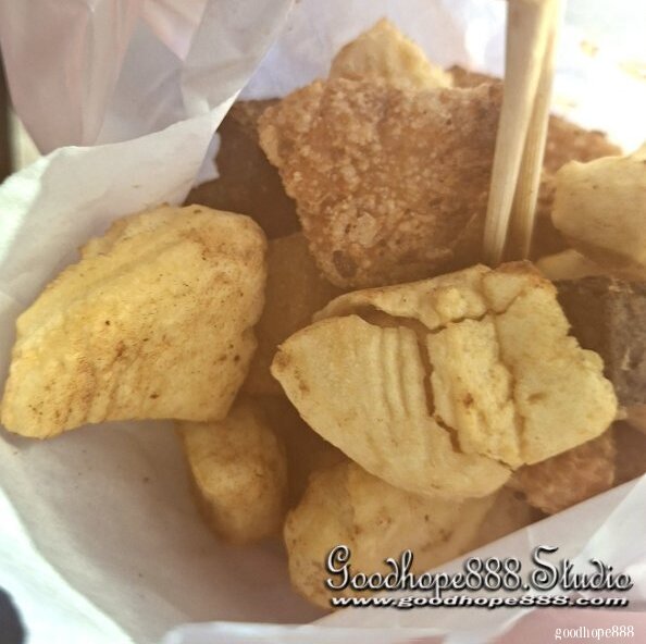 牛蒡純魚漿天婦羅 Burdock tenpura.脆皮肥腸 crispy Intestines.手工月亮花枝蝦餅.紅蔥頭花生糯米腸 Sticky Rice Sausage with Peanut.正大溪豆干 dried tofu.