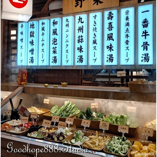 干貝昆布湯/九州蒜味湯/一番牛骨湯/柴魚壽喜湯/椒香麻辣湯.
