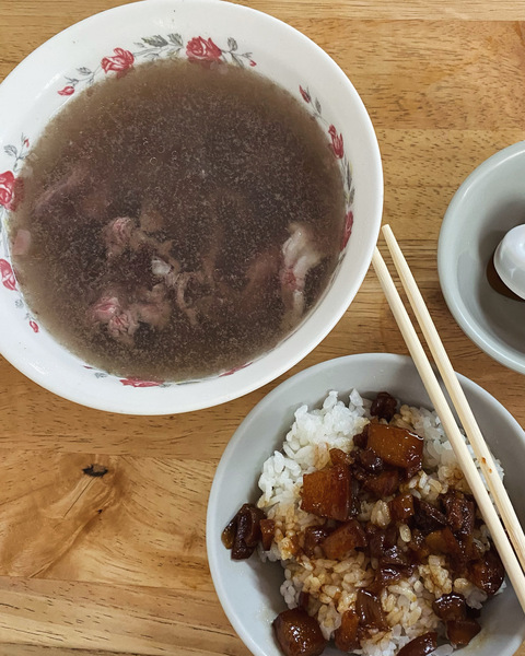 西羅殿牛肉湯 #牛肉湯 清甜, 新鮮無肉腥味, 附贈的辣醬推荐一定要試吃 (中辣不刺激,應是老闆獨家特制) #魯肉飯 好吃粒粒分明魯肉很工整細緻, 魯肉半透明亮晶晶, 超推 #客流量很多, 外國人...
