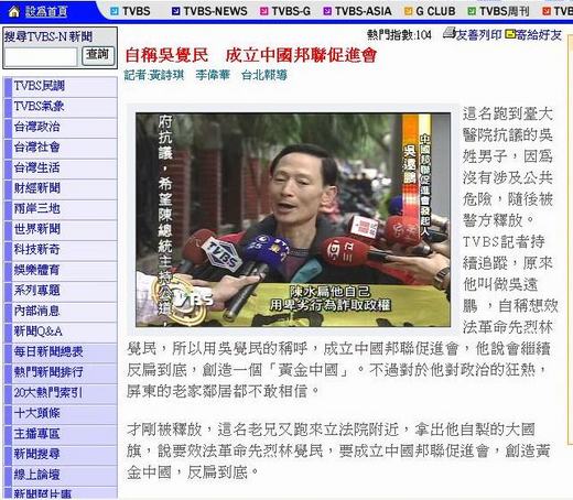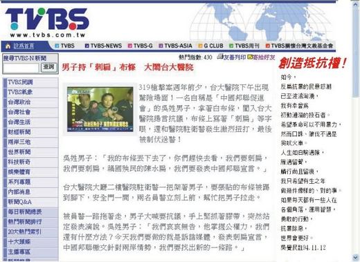 感謝諸多媒體大幅報導我的『歷史刺扁』行動, TVBS且有網站留下新聞頁面,謹此借用,並誌銘感。