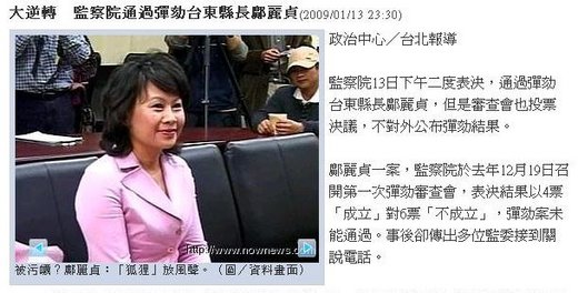 監察院彈劾台東縣長鄺麗貞,第一次審查會未通過,遭致「辦綠不辦藍」的譏評,日前第二次通過了彈劾案,卻因審查會決議不對外公布結果,而更遭質疑。監察院王院長十六日臨時召開工作檢討會並對外澄清,王院長表示:監察院有權投第二次,以後原則上都公佈,除了跟國防外交機密有關的。然而這樣的說法及作為,能挽回監察院受到重創之形象?