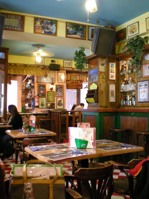 午餐時間可是冷靜多了,備有套餐。服務生身穿古巴黑人的傳統服飾,只差著頭沒有包起來而已。店內裝飾豐富,牆上沒有幾塊空白的地方。