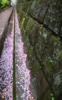 吉野櫻盛開中...連水溝都蓋滿花瓣了