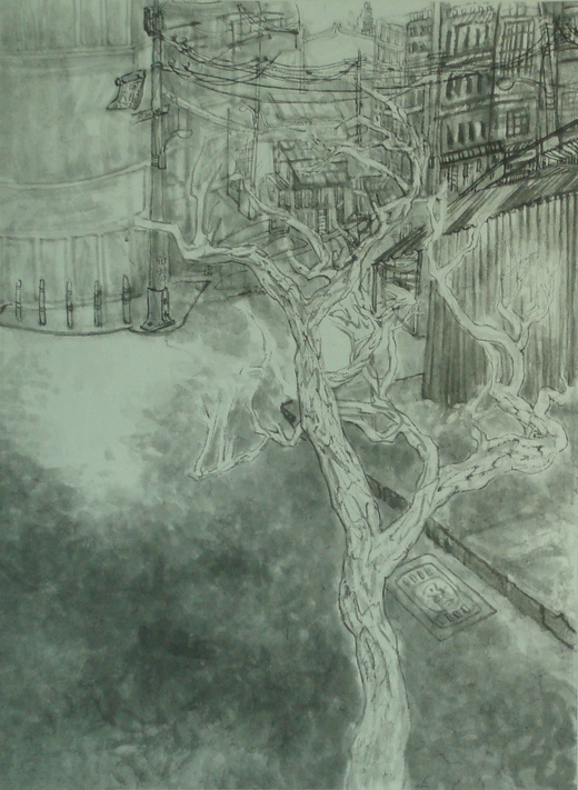 我想慢慢的作自己該作的事情,把觀看到跟感受到的溫柔與泥濘累積,嘗試在現實生活卡住一方園地,這件作品就是想把都市裡的人,提到一點空間,像這棵樹,離開一下城市街道,稍微伸個懶腰一般鬆口氣,在這裡,先給我的朋友與戰友鬆口氣~