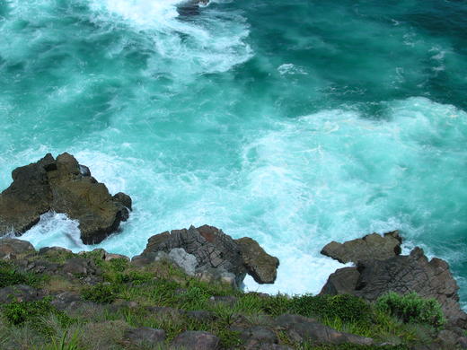海岸激起的朵朵浪花,藍白綠相間,色彩豐富,