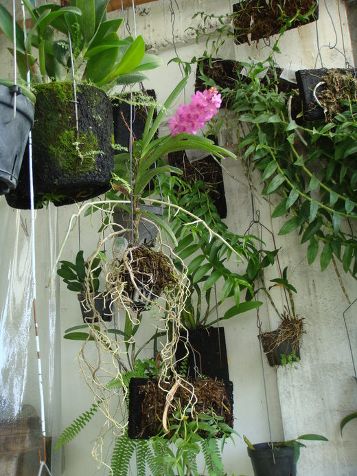 二、三年來,我最欣賞的也是你所敘述的那「株」千代蘭,不說那「盆」,是因為它從來都沒種在盆子上過,剛開始時它連水草也沒有。仔細看,這張相片拍的還真傳神。上半部葉片端莊有神,花兒嬌豔燦爛,下半部卻向四周無休止的延伸擴張,若與後面的蘭花相比較還真的是『肆無忌憚』呢?您說的好,【每回看它開花都會驚嘆,真的是憑空生花耶】,我想給它下註腳為它真的是【活在當下,憑空生花】,套一句俗套話「有生命力的○○,最美!」
