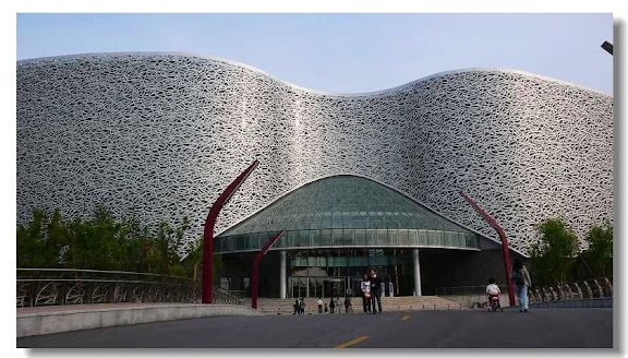 據說晚上還會發出不同顏色的光效.好像是鳥巢與水立方的綜合體.