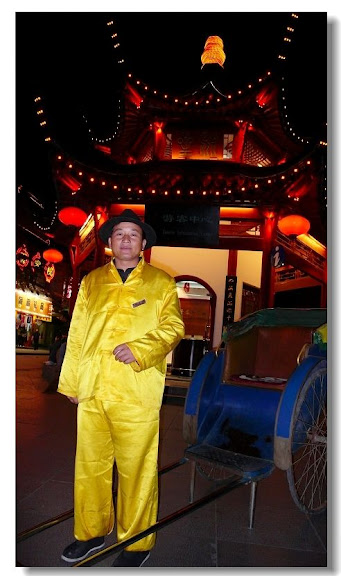 身穿黃色古式衣服,說些免強還聽的懂普通話,小圈RMB20/人 ,大圈RMB40/人.拉著你到各景點,講解一些歷史典故與風土人情.
