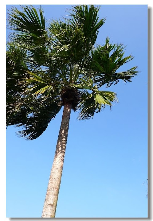 ▼ 藍藍的天空,加上椰子樹(應該是檳榔樹吧),像不像去海邊度假