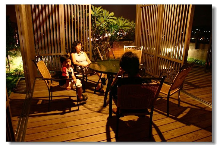 ▼ 大家都還沒有睡意,乾脆在樓頂吹著涼風,仰望星空(沒星星) ~ 聊聊天,