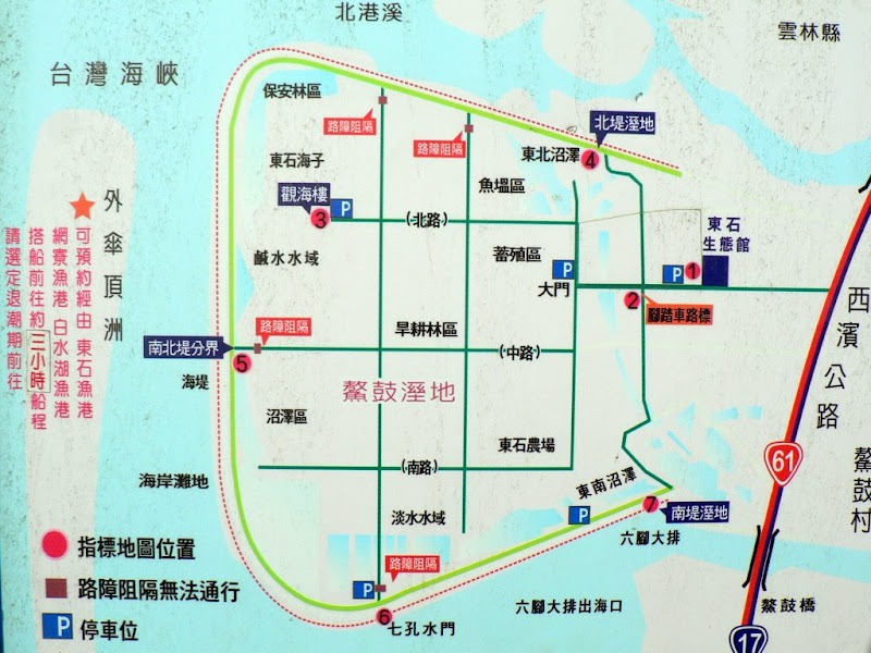 「鰲鼓濕地,位於嘉義縣東石鄉鰲鼓村西方,北臨北港溪,南面六腳鄉大排水溝,