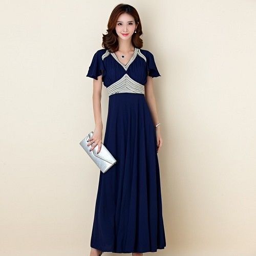 【白色戀人大尺碼】深藍色繡珠荷葉袖長款晚禮服 ![]() |