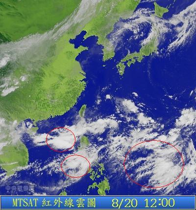 PS:今天特别看了下FY-2的卫星图,发现云系比前面稀薄很多。看来短期出现较大降雨的可能性不大。高温可能反而会是问题。此外,两个新出现的台风都不会影响台湾与大陆,这个是幸运的事情。不过九月还是有台风登陆的高度可能,这个值得注意。