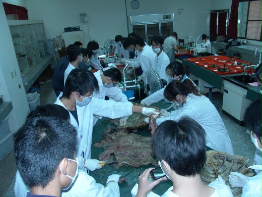 原來想要收集處理海龜標本的目的,是製成標本供教學及研究用,以及由胃含物瞭解其食性,或其覓食區域。但一年來三隻在台中附近拾獲之三隻海龜標本,均在腸道發現許多塑膠垃圾。過去應少有人將死亡之海龜屍體製成標本,因為這些死亡以久的個體無論外貌氣味都會讓人退避三舍。多虧研究生們任勞任怨,將屍體帶回學校,方能有這些發現。解剖當日,海龜屍體散發之氣味,從二樓實驗室漂至整棟十二層樓的所有研究室及教室,讓生命科學大樓的男女老少,俱都體驗到喪失生命後的真實情境,想必讓人的「口鼻一新」。