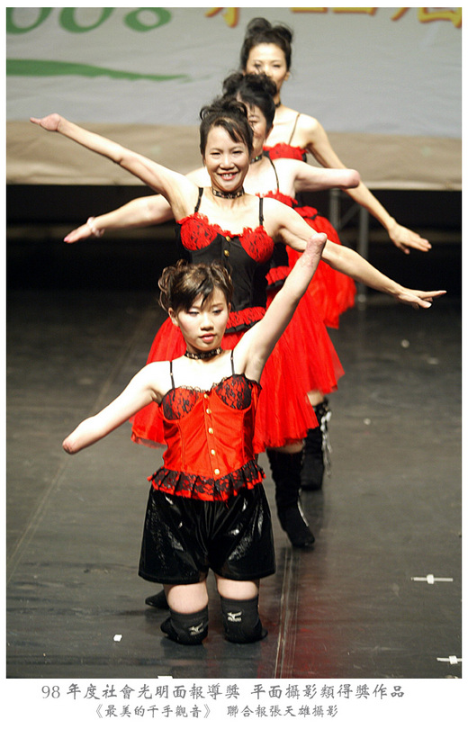 千手觀音第12屆「弦月之美」身障人士才藝大展,民國九十七年十一月底在台北國父紀念館演出,截肢舞者組成的「弦月舞集」舞出動人的律動。 記者張天雄/攝影