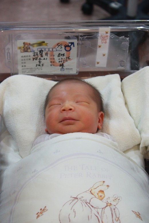 在推我到手術室時,由於麻醉師還沒下來,我已經痛到在亂罵人了,罵麻醉師怎麼那麼慢,還不能幫我打針,罵醫生咧,怎麼還沒看到人等等的,然後只知道有人在我的點滴裡注射一些藥劑後,再醒來我已經在恢復室了,但還是迷迷糊糊的,只看見老公在我身旁,告訴我媽媽、婆婆、丫姨都很高興我們母子平安,也都回家休息了,而且他還很體貼的說我很棒,說我幫他生了一個很可愛的兒子呢!聽到這些話,我又很心滿意足的繼續迷糊沉睡下去了。