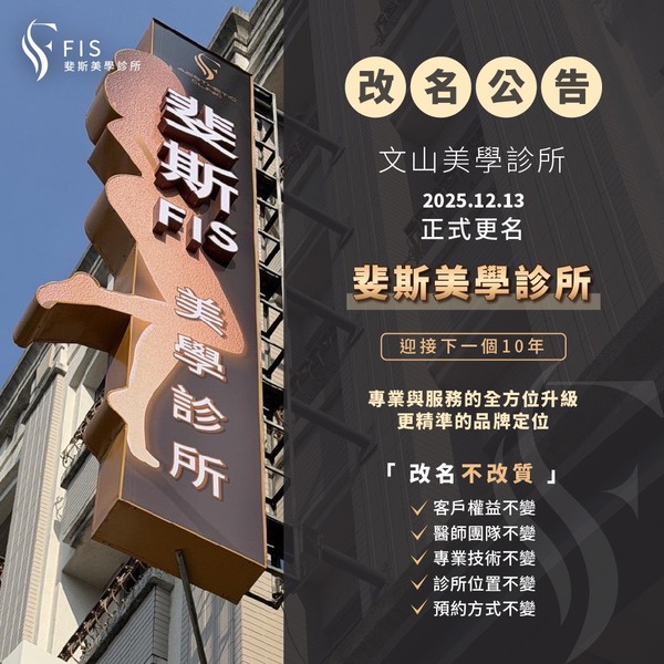 只是品牌進化升級更名為「FIS 斐斯美學診所」。