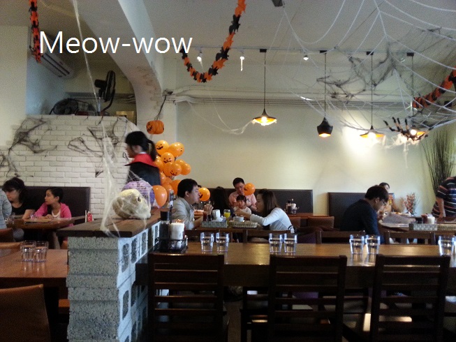 萬聖節快到了,整間店擺設洋溢著萬聖節的氣氛,店員也cosplay