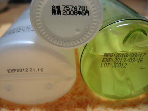 我找了幾個瓶子拍了張照。其實不論是塑料瓶、玻璃瓶、軟管瓶、小安瓶,每一種瓶子都沒有噴印上的難度(都能克服啦)。這些都是「很誠信地」將保存期限直接拼噴印在平底的商品。有一瓶還是【製造日期】與【保存期限】同列。