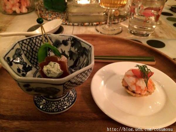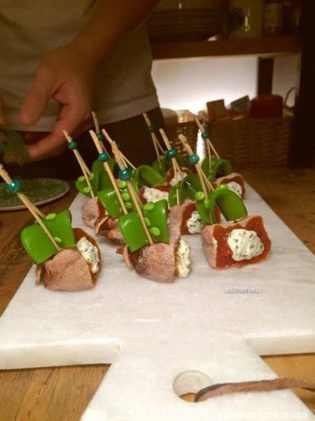新埔筆柿鑲香菜奶油起士搭配碗豆夾