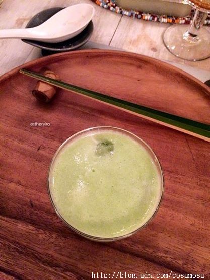 青江菜、鳳梨、蘋果、檸檬、蜂蜜、香蕉製成的綜合蔬果汁