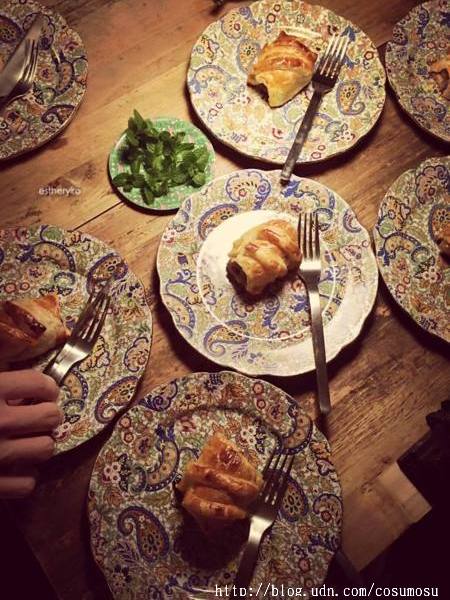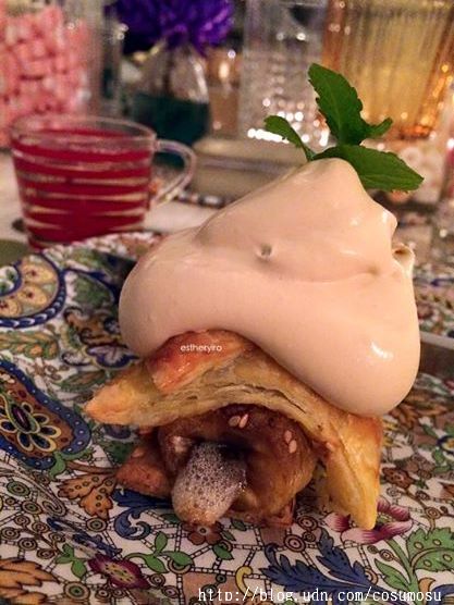 甜點:香蕉酥皮派佐太妃焦糖鮮奶油及綜合香草茶