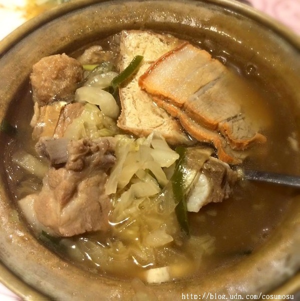 內有五花肉、油豆腐、凍豆腐、酸菜白肉、排骨、海帶、粿條。