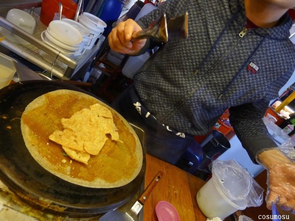 看了挺新奇,便點了份蕎麥麵煎餅,順便看老闆怎麼做煎餅。