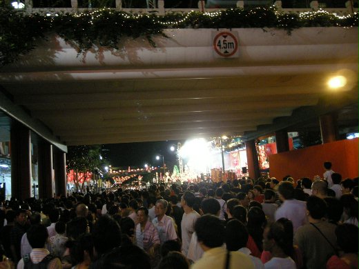 和台灣不同的是,新加坡人似乎喜歡在除夕夜「與大家同樂」。正如同友人的事前警告,China town果然是滿坑滿谷的人。看著眼前的人潮,我實在很後悔自己穿了超過五公分的high heel shoes。這下除了要突破重圍還要時時注意不要摔倒了。當然,我們也一路發揮了吃不到年夜飯的「賤性」。除了在Swensen用紙巾模仿了擁有獨特style的「小方巾」先生外,也邊走邊數落不待在家吃團圓飯的新加坡人。
