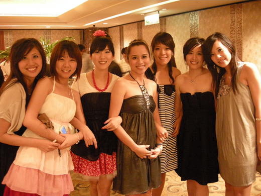 說起來,我們五個人真的算是低調但時而很誇張的一團。為了謝師宴,五個人在宿舍打了一場女人戰爭,衣服脫的到處都是、髮飾、化妝品滿桌,忙亂中連化妝手都會抖的老潔、有沒有用假睫毛都一樣有神的阿如、短短時間內就老神在在的阿卞、永遠保持溫柔幽雅的久惠、還有永遠都在求救的我,五個人一字排開是很有氣勢,但一同遲到,似乎也算很特別的開場。