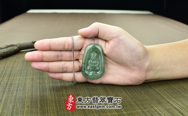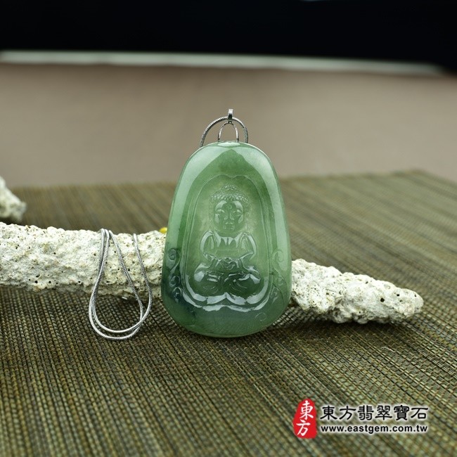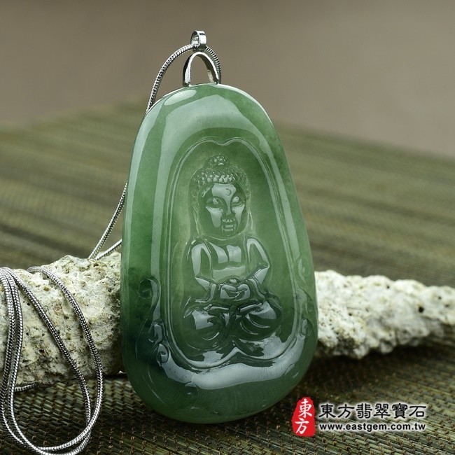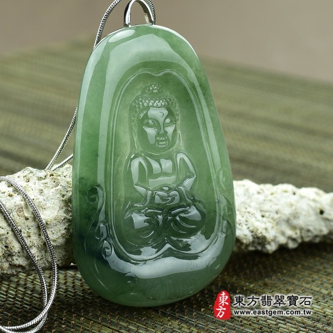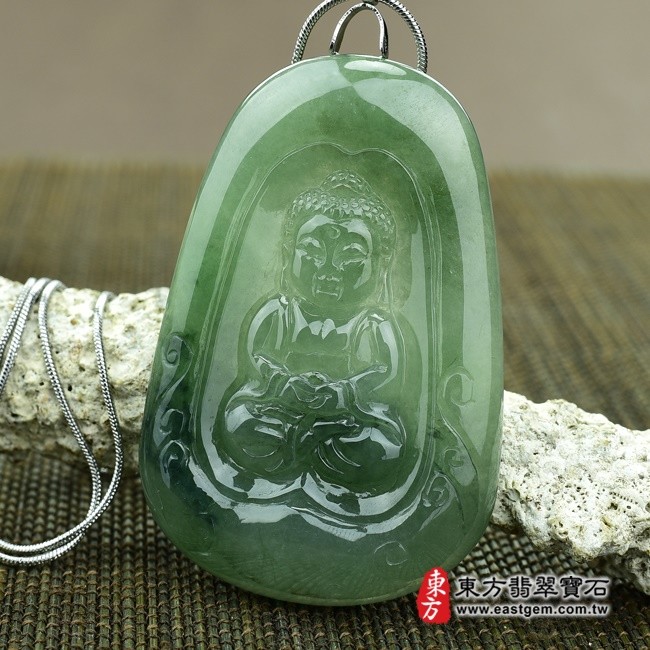 母親節折扣活動 【東方翡翠寶石】釋迦牟尼佛祖A貨翡翠花件玉墜(細糯油青飄花,微冰種)FD010