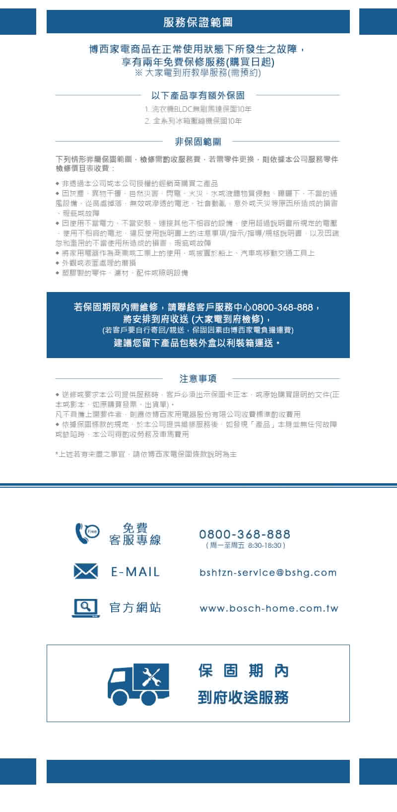 ※詳細功能請參考網頁的產品規格BOSCH家電官網