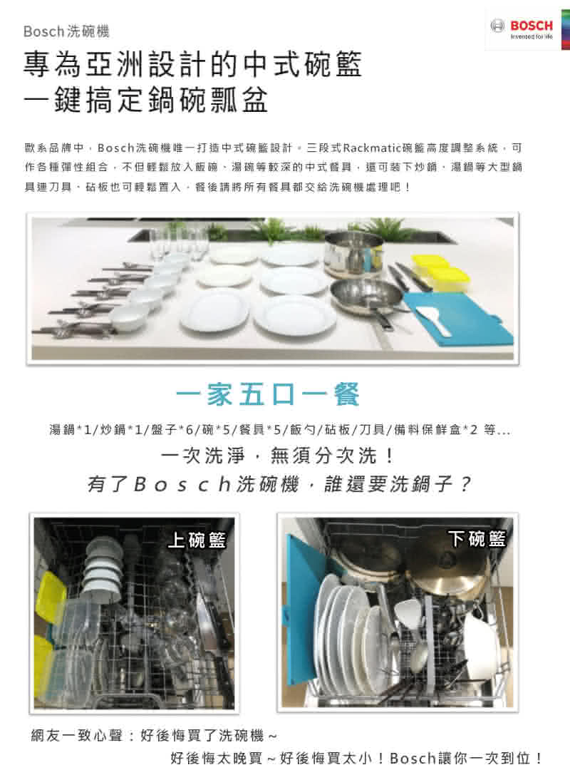 幸福洗碗 Bosch 45cm 水動能洗碗機→
