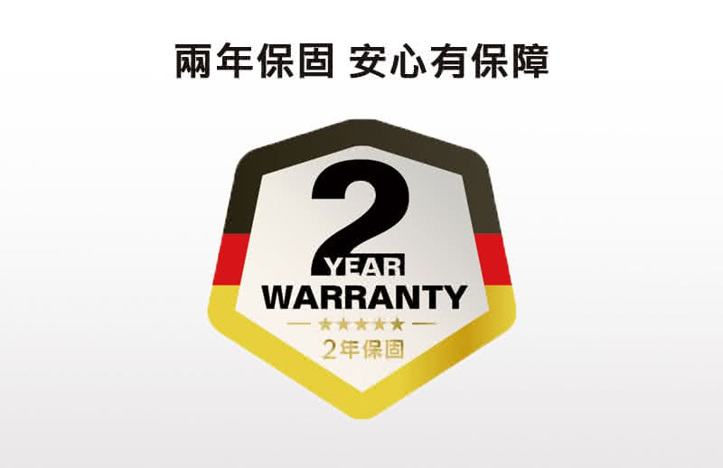 - 原廠保固一年,上網登錄即可享一年延長保固(共計兩年)