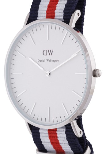 Daniel Wellington 的 Canterbury 尼龍手錶,採經典銀色圓框和三色條紋錶帶和錶盤背面品牌雕刻。 - 2 年維修保固 - 尼龍錶帶 - 不銹鋼裱框 - 刻度顯示細節 - 石英機芯 - 3ATM 防水功能 - 可調式扣環設計 - 行針設計 - 商品源自Daniel Wellington授權經銷商,絕對真實且品質保證。