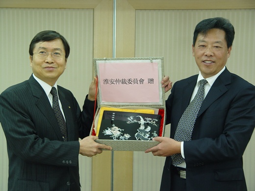 2009年12月8日上午11時,淮安市仲裁委員會江匯源副主任率團員金科、孫濤......等六人,拜訪中華民國仲裁協會。