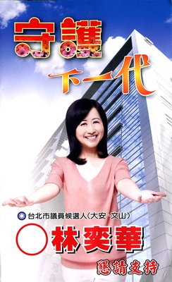 台北市議員選舉正在進行中,友人厲耿桂芳於2010年10月15日中午成立競選辦事處,林奕華也於2010年10月16日上午10時成立,潘懷宗則於10月17日上午10時成立。