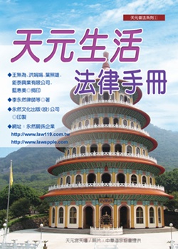 天元宮住持黃阿寬先生在修道之餘,也關心民眾權益,便詢問本人能否在天元宮舉辦生活法律講座?我慨然應允,遂訂自2010年12月5日開始每兩個月於「天元宮」舉行一場法律演講。如佐以法律手冊的閱讀,效果將可相得益彰,《天元生活法律手冊》應運而生。感謝王無為、洪娟娟、葉照雄、鉅泰興業公司及藍惠美等友人捐印本法律手冊,讓讀者即刻擁有最新、最實用的資訊,俾求和諧地生活,並達心靈純淨。