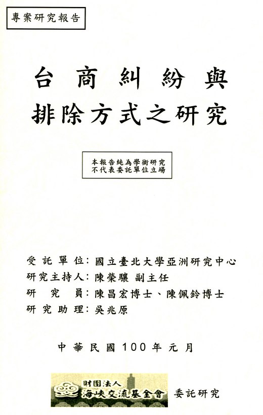 海基會委託國立台北大學亞洲研究中心進行「台商糾紛與排除方式之研究」,該研究於2011年1月28日上午發表,東芫台商協會前會長葉春榮、我也受邀前往一同審查。
