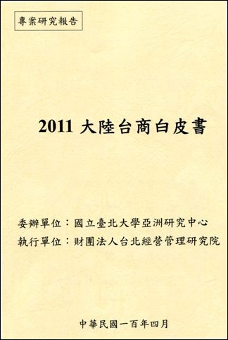 由國立台北大學亞洲研究中心委辦,由財團法人台北經營管理研究院執行的「2011大陸台商白皮書」已出版。