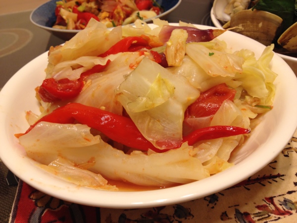 家裡剩下一點高麗菜,蒸好後拿來拌著:好吃!