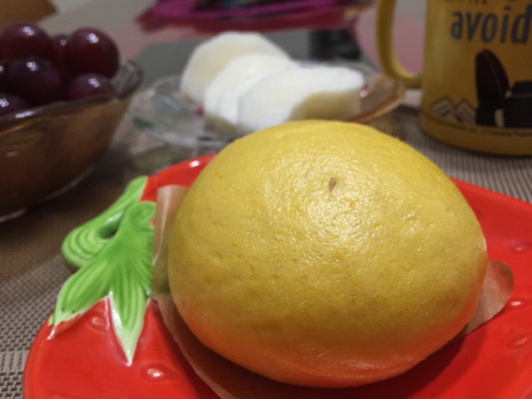 咱們家的人聚一塊兒就老是研究吃的,大姐這次教了我做饅頭,就也趁假期做了一批送人,也可當成上班前的早餐。黃澄澄的饅頭,一點糖及油都沒加,就只麵糰揉進了南瓜,外加塞了蔓越莓及南瓜籽。好有成就感!