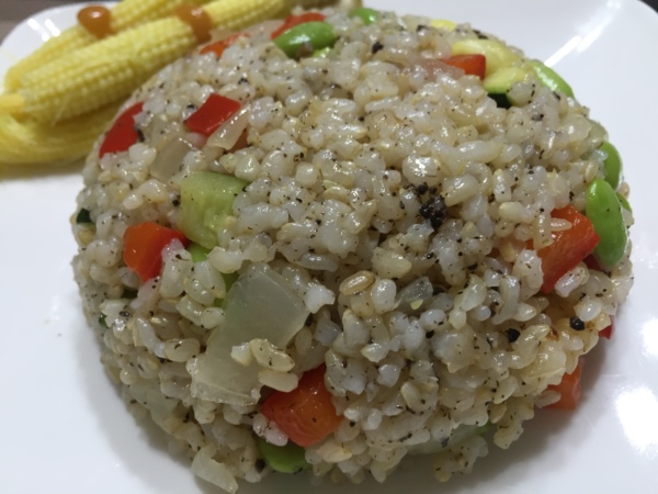 買的這瓶松露醬是5%,以味覺不怎麼靈敏的我來說,其實味道不若想像中的重。第一次拿來做素炒飯。食材有洋蔥、櫛瓜、冷凍櫃剩下的毛豆、甜椒,用的是跟同學以秀明農法種植的香米,加二約二大匙的松露醬,炒起來一大鍋。接下來一整個星期早上吃的都是這鍋炒飯,清爽無負擔,而甜點(對啊, 早上也有甜點)是用