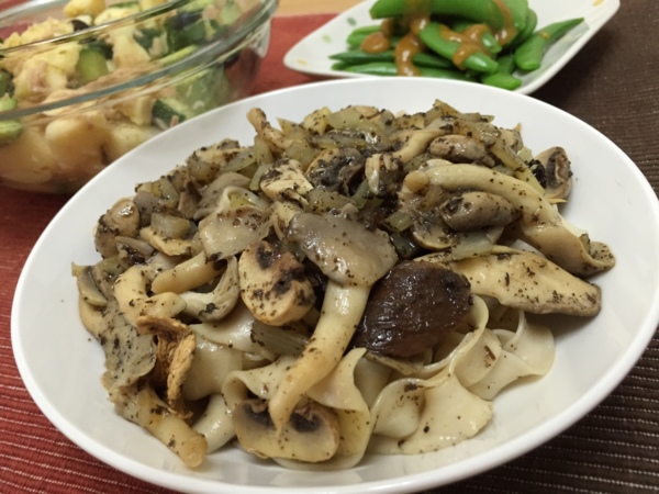 第二次就拿來做蘑菇麵。因為不太愛乾燥義大利麵(心想如果能買個壓麵機…..),所以用的是拉麵。準備了各式菇類,最貴的當然是乾燥牛肝菌。 老闆佛心來著,一大罐牛肝菌太貴,想來一般家庭主婦下不了手,所以都讓大家可以買個100元來嚐鮮,因為用了不少白酒,香氣四溢~但已經分不出松露還是牛肝菌的氣味了~