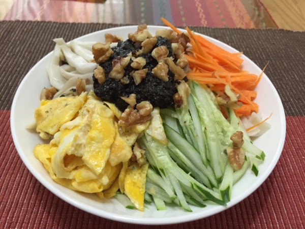 一回在迪化街買了芝蔴粉,一大包,老想著怎麼才能快快趁新鮮吃掉。有時加進牛奶裡,但最常使用的是加點醬油、水、糖及蒜末,調成芝蔴醬拌麵條。