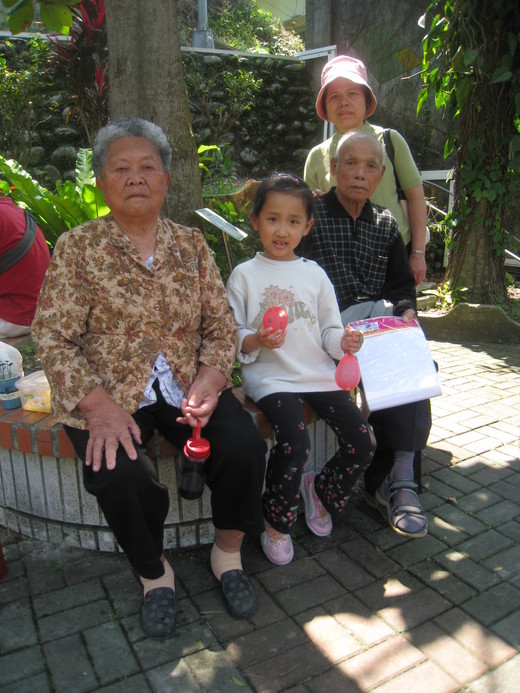 父親開車載著爺爺、奶奶及母親從桃園來參加園遊會,並帶來鳳梨與自種的蔬菜,熱情的太陽迎接著大家的到來,一家人在樹下歡聚,末學總覺得風和日麗的日子裡,爺爺和奶奶能出門走走是很棒的事。回程中,末學算算這一車家人的總歲數,四個人加起來已有二百九十四歲了,歲月在每個人的生命裡刻畫著深淺不一的痕跡,很高興今日我們一同在生命中記錄著幸福。