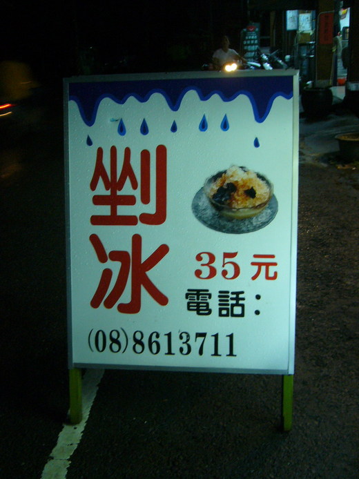 小琉球開車繞一圈只要二十分鐘,因此不到五分鐘我們就到了,攤子並不起眼,不過就是擺在騎樓外的店面,一個叉開腳站好的立牌,寫剉冰35元。