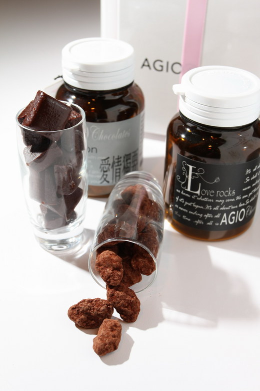 電話聲響接起,「喂,老闆,請問愛情誓言還有嗎?」老闆Robert回答,「誓言沒有了,只剩下毒藥。」「好吧,那幫我留一瓶。」 難道,真有人賣愛情毒藥?! 電影「王牌冤家」裏有家「忘情診所」提供情人們忘記痛苦的愛情記憶,若能加上台中這家名為「Agio」甜點店所販賣的「愛情毒藥」,可能效果加倍,由巧克力做成的「愛情獨要」與「愛情誓岩」,包裝猶如藥瓶,造型獨特引人莞爾。 「愛情獨要」是Agio開幕一年來的鎮店之寶,主人Robert從藥罐得到啟發,於是研發了這款愛情聖品。瓶上還煞有介事標註效能:消除寂寞、解相思苦,製造浪漫、促進幸福、感覺快樂。用量:一次多顆,愛情表白時請整瓶使用,搭配燭光晚餐使用效果顯著。注意:嚴禁三心二意,用情不專以免影響效果。 如此用來向愛慕者表白,還嫌不夠嗎?好吧,再來瓶「愛情誓岩」吧!Robert一次不小心煮焦了甜點,意外發現吃起來很像牛奶巧克力,造型很像岩石;兩瓶合購效果加倍,統稱「愛的力量大」,特價四百元。 Robert說,今年情人節有人因而求愛成功,還回來向他致謝;還有一位女客人將「愛情獨要」當補藥,一天一粒「餵食」男友,沒想到情人節那天收到男友簡訊:「情人節快樂,今晚陪你去買件衣服。」女客人驚喜地對Robert說,「毒藥奏效了,我跟男友交往十年,這是他第一次祝我情人節快樂耶!」 不過六十年次的Robert雖救人無數,自己卻因工作忙碌、獨缺愛情,也算是另類的犧牲奉獻吧! |