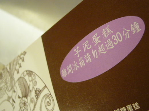 蛋糕盒上寫著「離開冰箱請勿超過 30 分鐘」,我一想到芋泥一旦超過某種臨界點,無論是甜度、溫度或分量,就像過期的愛情,淪入因膩生厭的狀態。如果可以,真想將得來不易的芋泥蛋糕上擔架,讓救護車「護送」它在最短時間內,回到家中的冰箱裡。